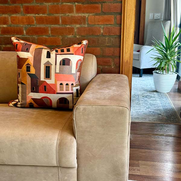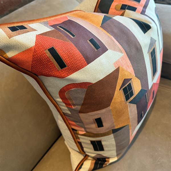A heavy-textured 100% cotton base cloth, called Home, is sure to be a conversation starter! Upholstery fabric used a the back, 60cm x 60cm