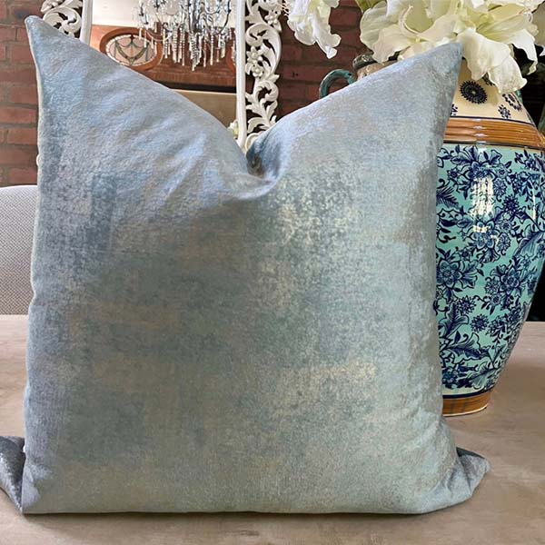 Double sided upholstery fabric 60cm x 60cm scatter cover with zip. Eggshell blue with a tint of sheer.